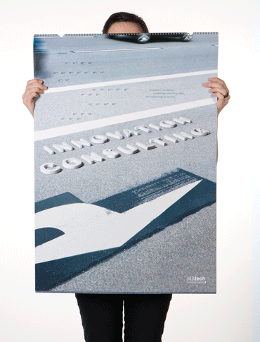 In 2010 MBTech hosted its third calender contest for design students. Our submission, The Written Street, was chosen to be published. Each scene portrays MBTech‘s work on different travelways. Those are present on the streets (even though they are invisible), and brought into focus by styrofoam letters in the photographs.