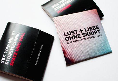 "Lust und Liebe ohne Skript" (lust and love without script) is an educational and entertaining website for teenagers that focuses on the misconceptions that can be caused by pornography. The imagery shows how artificial it is.